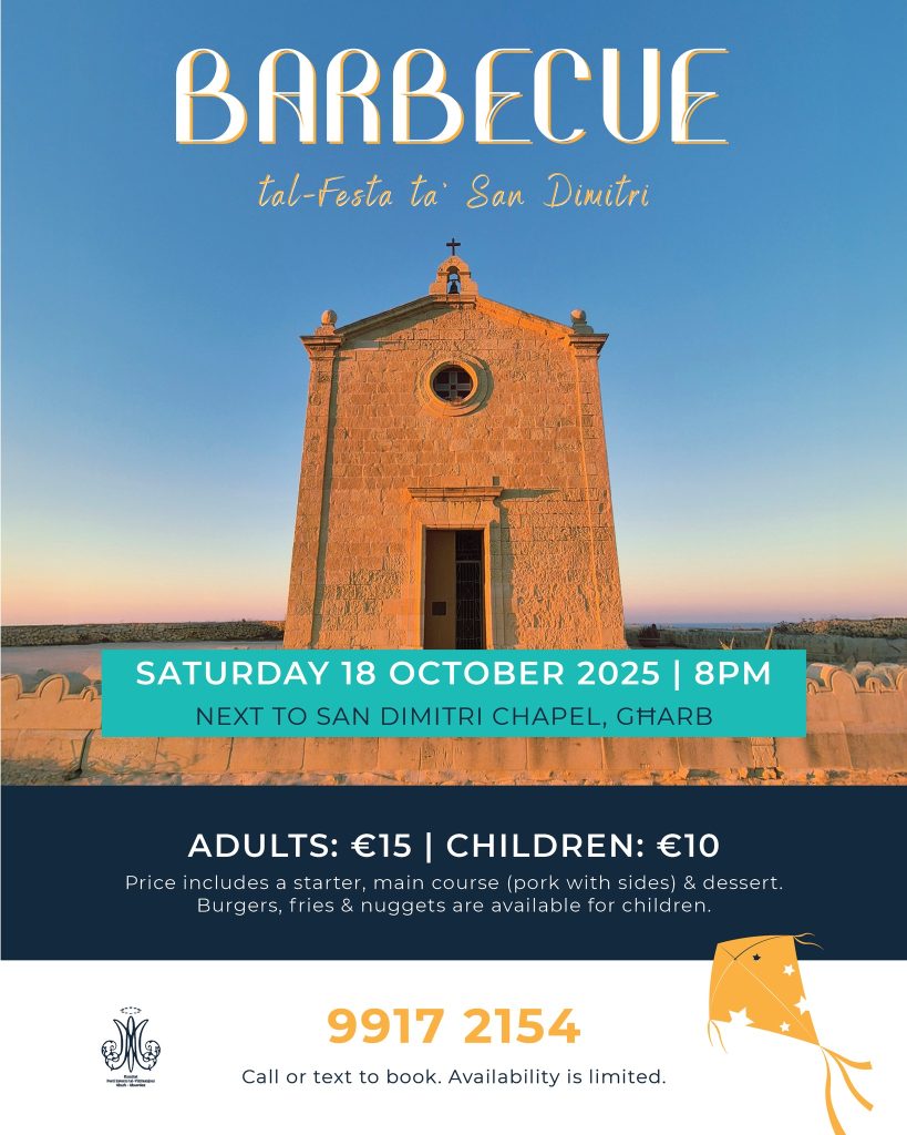 Join us for a festive evening at the Barbecue of San Dimitri’s Feast, taking place next to the scenic San Dimitri Chapel in the picturesque village of Għarb, under a beautiful starry night sky. Bring your family and friends to enjoy a warm, welcoming atmosphere filled with delicious food and great company.