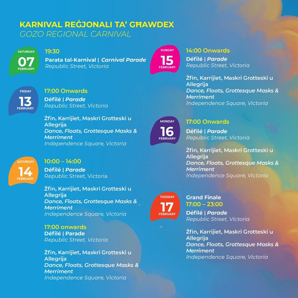 From creative street performances and energetic dance troupes to family-friendly entertainment and delicious local treats, this is a carnival experience like no other. Whether you’re a returning visitor or discovering the magic for the first time, the Gozo Carnival promises unforgettable memories, contagious fun, and a festive spirit that will stay with you long after the parade ends!