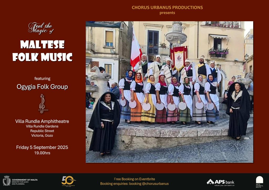 The evening features the talented Ogygia Folk Group, a vibrant ensemble from Gozo named after the legendary island of Calypso. With colourful costumes, lively rhythms, and traditional dances, Ogygia brings Malta’s folk heritage to life in a joyful celebration of culture and community.