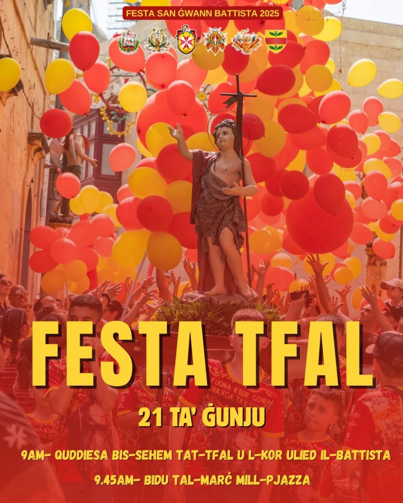 9:00am – Mass with participation of children and the choir Ulied il-Battista.