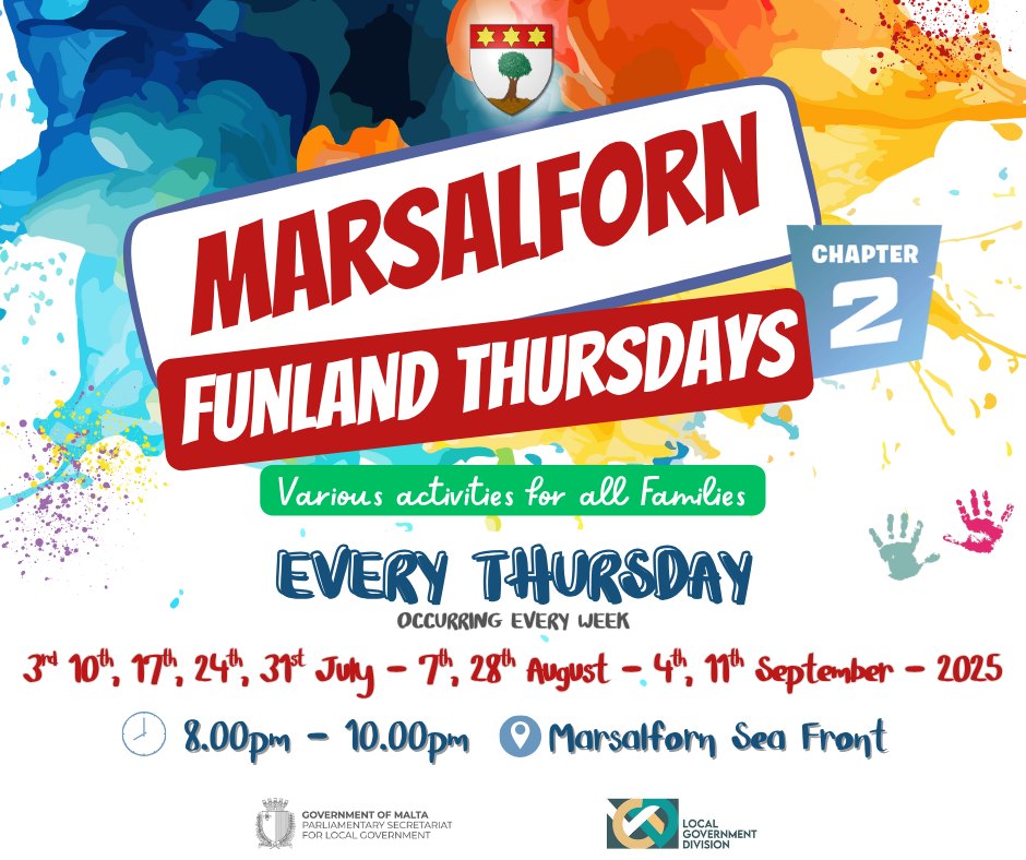 Every Thursday, the Marsalforn Front transforms into a vibrant hub of summer fun for all ages! Funland Thursdays offers a delightful mix of free entertainment, including a live band, live artist painting, and a wide array of children’s activities—from bouncing castles and pony rides to zip lines, live demonstrations, and much more. Whether you’re looking for music, art, or family-friendly excitement, this open-air event promises an unforgettable evening by the sea.