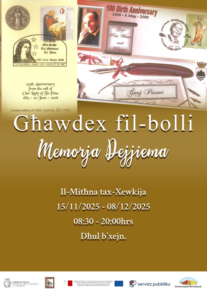 Discover rare and historic stamps featuring landmarks, traditions, and influential figures who shaped the island’s identity, alongside unique postal artifacts that trace the evolution of communication on the island. The exhibition also highlights artistic stamp designs and engravings that capture Gozo’s natural beauty and cultural spirit, complemented by interactive displays and stories that bring the past vividly to life. Whether you are a passionate philatelist, a history enthusiast, or simply curious about Gozo’s timeless charm, this exhibition offers a meaningful journey through art, heritage, and memory — a lasting memory of Gozo told through the artistry of postage.