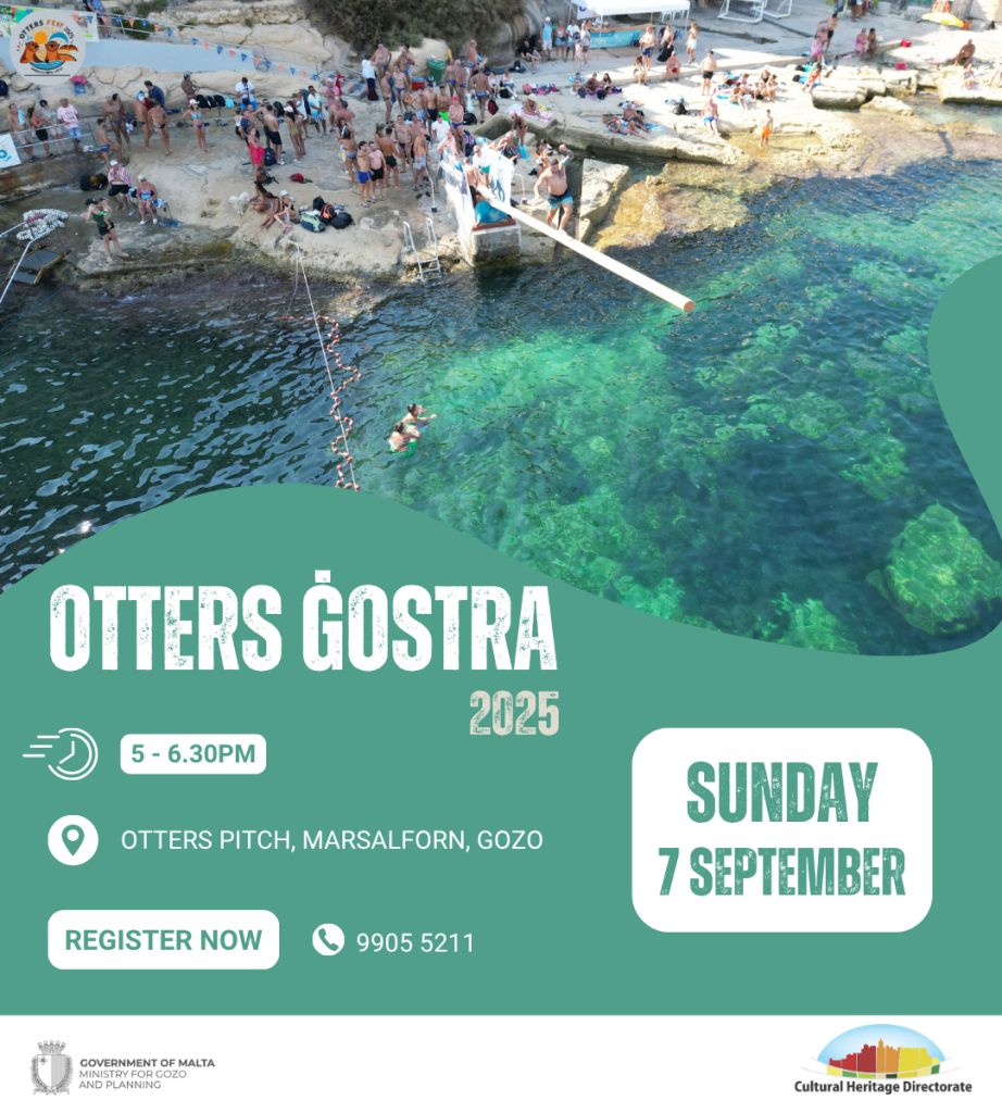FreeJoin us for Otters Ġostra! Get ready for one of Malta’s most thrilling summer traditions! Watch brave participants race across a greased pole suspended over the sea — slippery, exciting, and full of laughs! Don’t miss the fun, music, and great vibes by the water. Bring your friends, swimsuits, and cheer on the challengers!