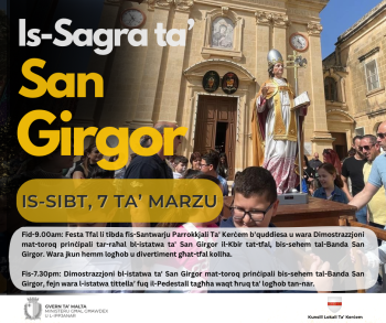 • 19:00: Mass for the first day of the Novena, featuring the San Girgor Band along with the children’s choir in which the new band club flag will be blessed.