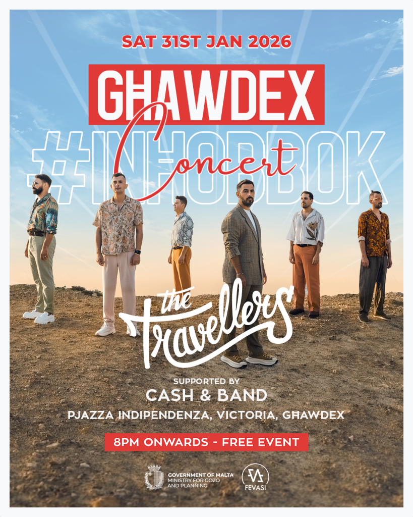 As we come together for the energetic Inħobbok Concert featuring the beloved band The Travellers, supported by Strait Ahead, get ready to experience an evening that celebrates the heart and soul of our islands. Set against a stunning Gozitan backdrop, this event promises uplifting music, a vibrant atmosphere, and a celebration of local culture. Mark your calendars, gather your friends, and be part of a night filled with rhythm, community, and pure island spirit! Let the melodies carry you, the crowd inspire you, and the moment unite us all as we celebrate Gozo with pride, joy, and unforgettable memories.