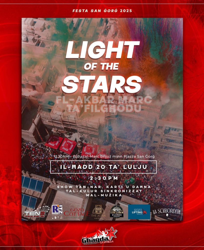 Light of the Stars! Join us for a spectacular morning march finale in Gozo during St. George’s feast featuring confetti, smoke, and fireworks.