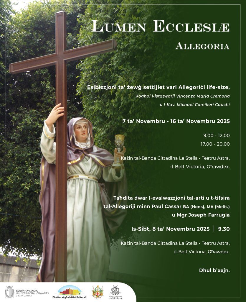 As part of the accompanying cultural program, a public talk will be held on the 8th of November, focusing on the evaluation of art and the interpretation of allegories in both historical and contemporary contexts. This discussion will be led by Paul Cassar BA (Hons), MA (Melit.), and Mgr Joseph Farrugia.