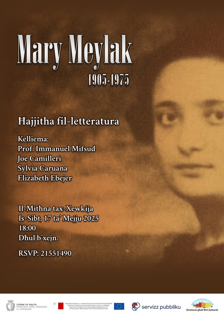 Join us for a commemorative evening honouring Gozitan poet Mary Meylak (1905–1975). The event will feature poetry readings of her work, a presentation of one of her novels, and musical interludes.