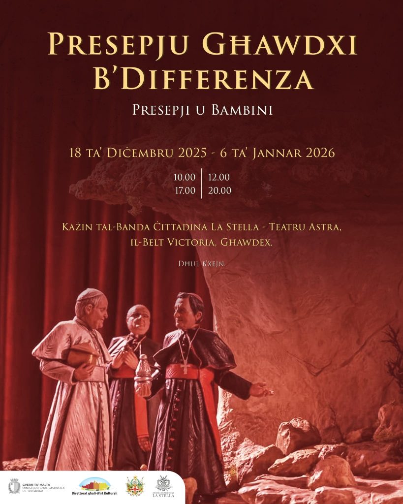 Join us and witness a unique crib with a difference. This crib incorporates not only traditional figurines but also original figures that portray popular personalities, mostly from Victoria. The three wise men are represented by Pope Francis, Cardinal Mario Grech & Archbishop Charles Scicluna.