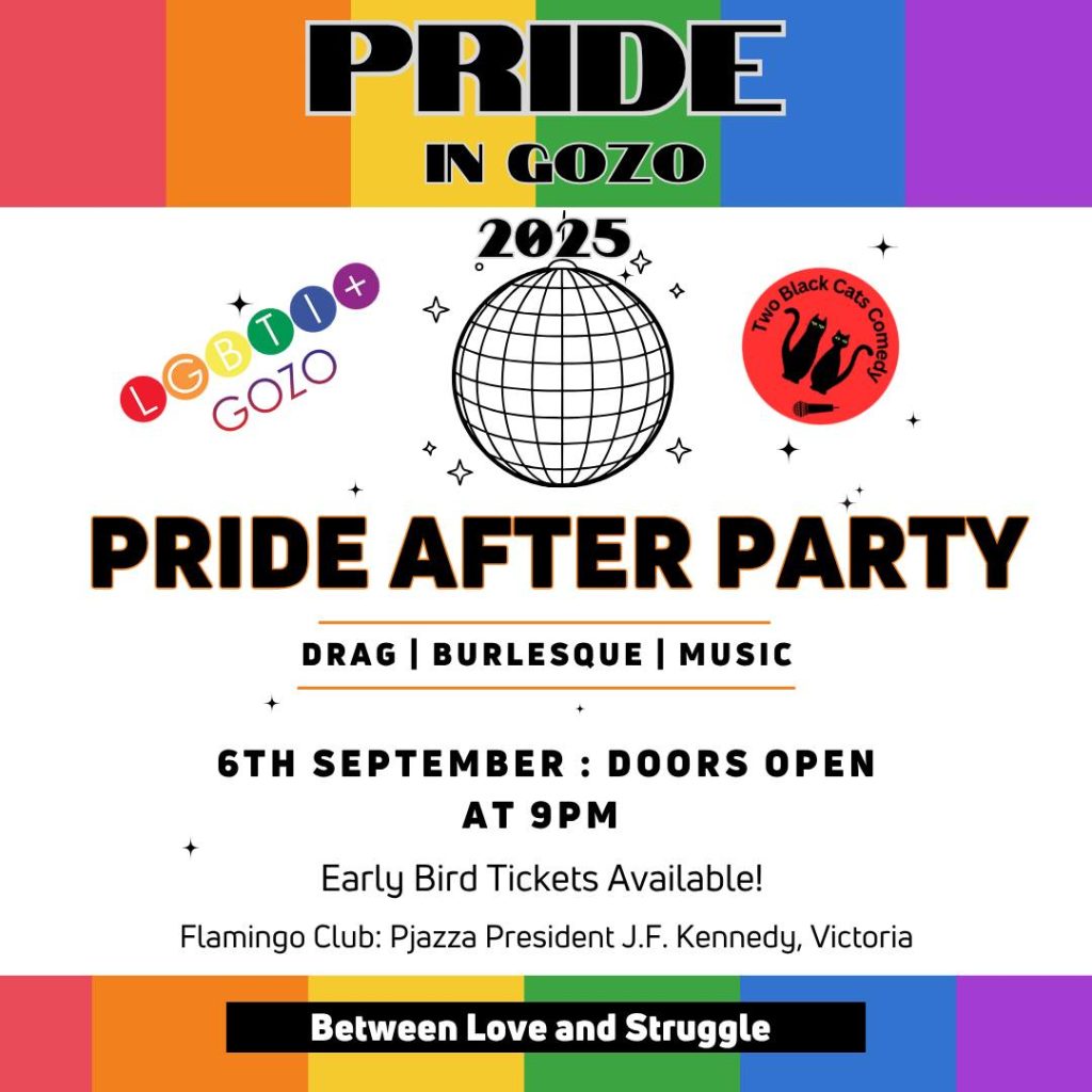 Our Pride 2025 programme will soon be live, but here is a sneak peak of our exciting lineup of events! Right after the Pride March, head to Flamingo, Victoria for a night of drag, burlesque, and pure queer magic—presented by LGBTI+ Gozo and Two Black Cats Comedy for our debut Gozo show!