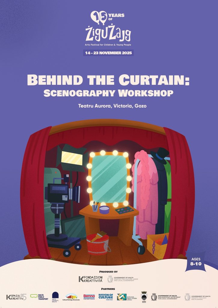 Join us at the Aurora Theatre in Gozo for Behind the Curtain, one of three special workshops introducing children to the hidden world of theatre. This fun and interactive 2-hour session is designed especially for children aged 8 – 10 and focuses on scenography — the art of designing stage sets and bringing stories to life through space, color, and imagination.