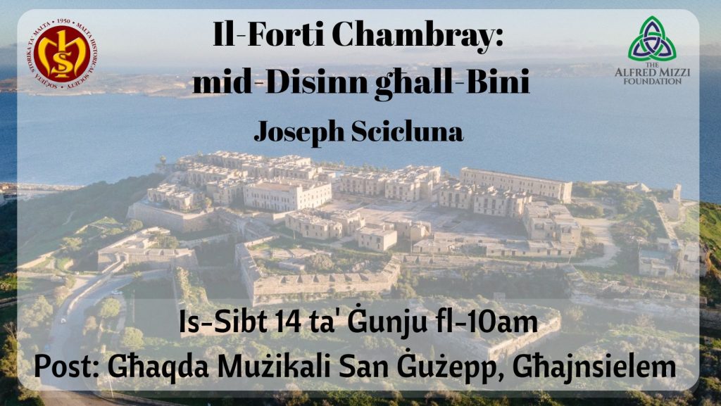 The Malta Historical Society invites you to the public lecture, Fort Chambray: From Design to Construction by Joseph Scicluna.