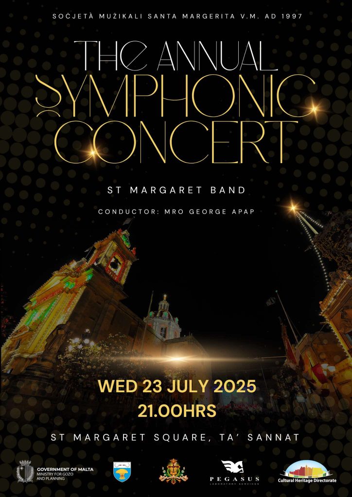 St. Margaret Band proudly presents its annual Symphonic Concert, led by Mro George Apap. Enjoy a rich mix of classics, contemporary pieces, and pop favourites, featuring renowned guest singers and ending with a stunning fireworks finale.