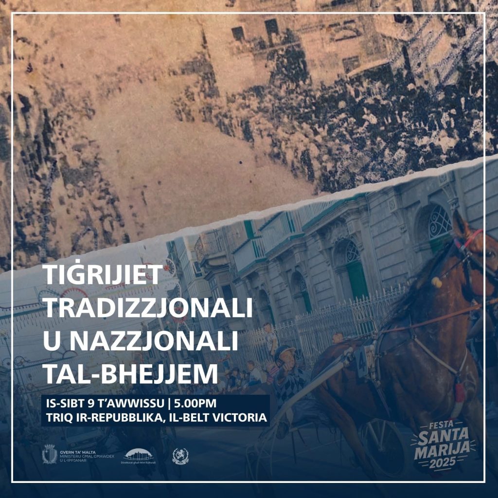 The traditional horse races held during the Feast of Santa Marija in Victoria, Gozo, are a treasured annual event that celebrates the island’s rich cultural heritage. The races feature thrilling bareback riding and various categories including ponies, trotters, and thoroughbreds. This festive and competitive event is more than a spectacle, it is a living tradition that unites the community and showcases Gozo’s enduring spirit and identity.