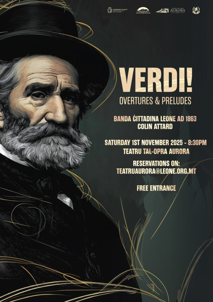 Join us for an unforgettable evening celebrating the timeless music of Giuseppe Verdi! Experience the powerful Overtures & Preludes performed by Banda Ċittadina Leone AD 1863 under the direction of Colin Attard. Don’t miss this stirring tribute to one of opera’s greatest composers!