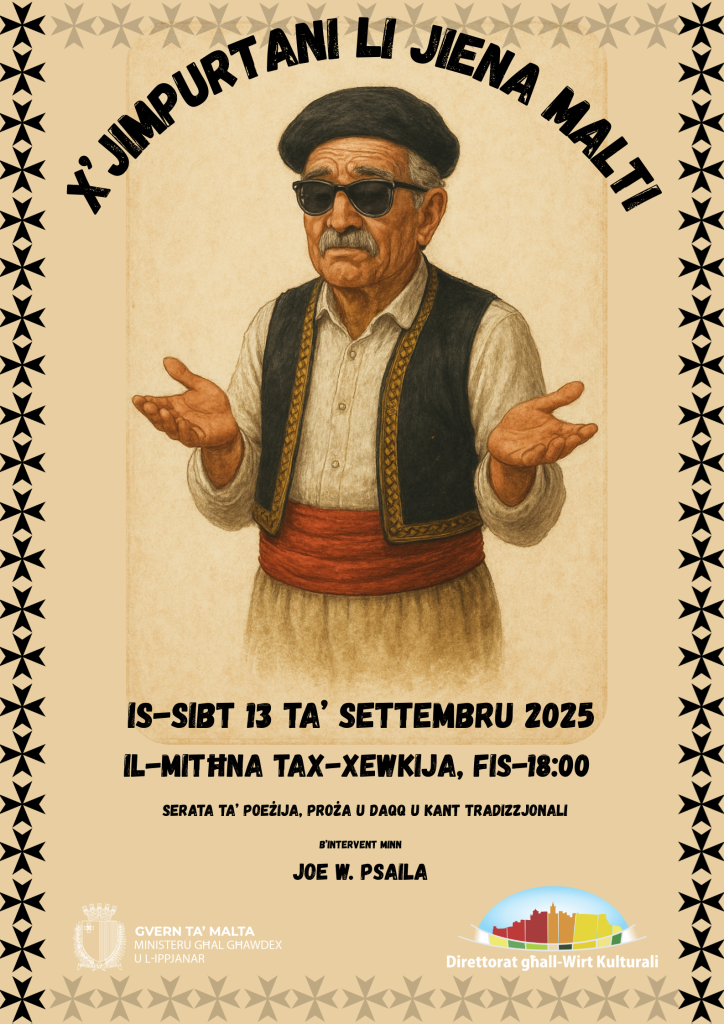 Join us for an unforgettable evening celebrating Maltese identity, language, and heritage at “X’Jimpurtani li Jiena Malti”. Immerse yourself in a vibrant night of poetry, prose, and traditional music and song, as we reflect on what it truly means to be Maltese. Featuring a special intervention by Joe W. Psaila, this cultural gathering promises heartfelt performances and rich storytelling in a uniquely local setting. Don’t miss this chance to reconnect with Malta’s soul and spirit through its most cherished traditions.