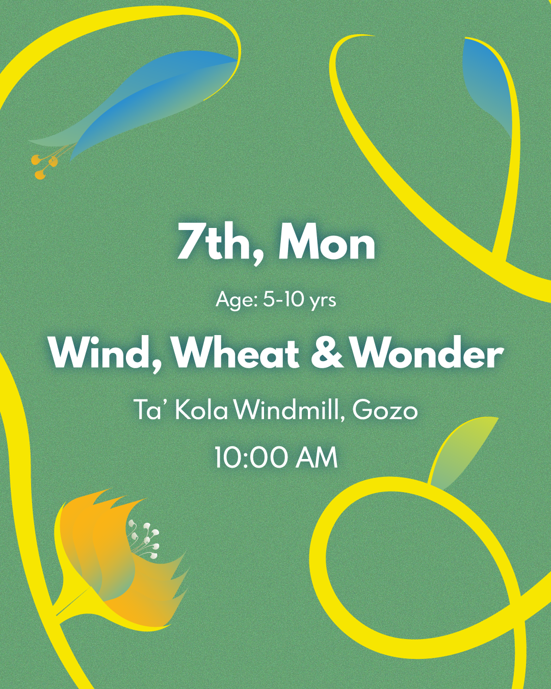 Imagine … A bright new morning with a favourable wind for a mill to be operated; the miller letting the locals know by blowing through a triton-shell; the villagers bringing their cereals to be ground into flour. On Monday 7th July at 10:00am, we are inviting children aged 5 -10 years to explore what such a morning would have been...