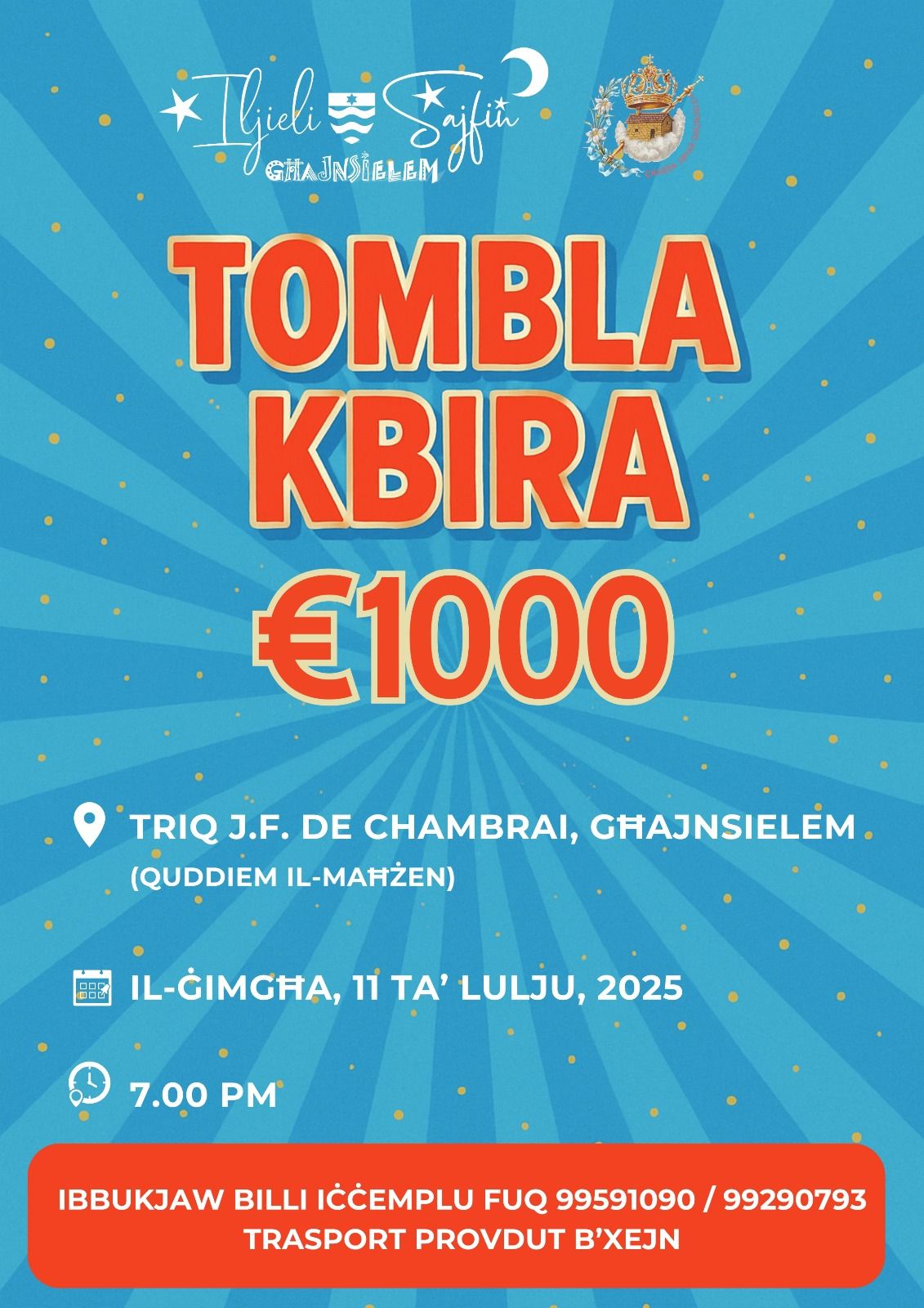 Join us for the Big Tombolo! Don't miss your chance to be part of the fun and win big! Call on 99591090/99290793 to reserve a place.  Free transport is provided.
