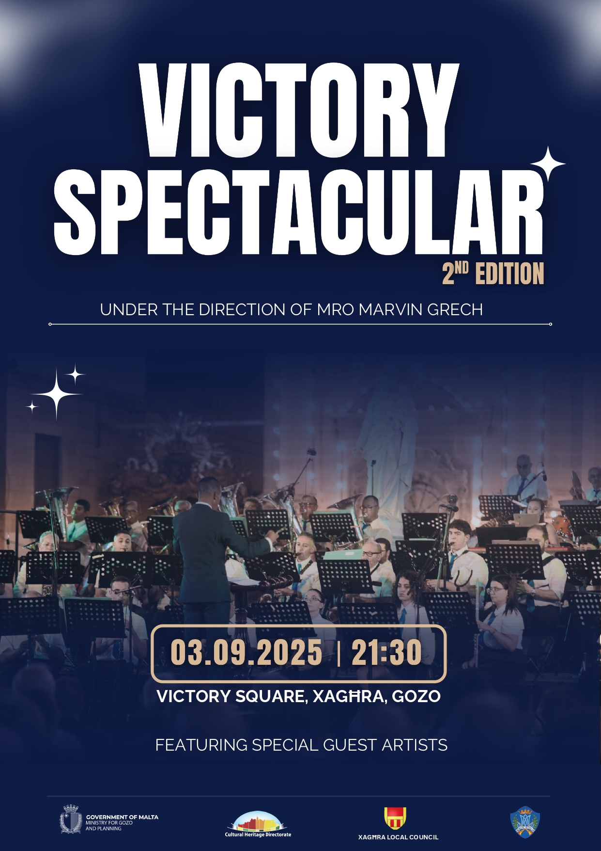 The Victory Philharmonic Society proudly presents the 2nd Edition of Victory Spectacular, under the direction of Mro Marvin Grech. Join us for an unforgettable evening as the Victory Band performs a vibrant mix of classical, pop and Maltese music. Special Guest singers will add to the celebration, making this a night to remember. The musical performances will be beautifully complemented...