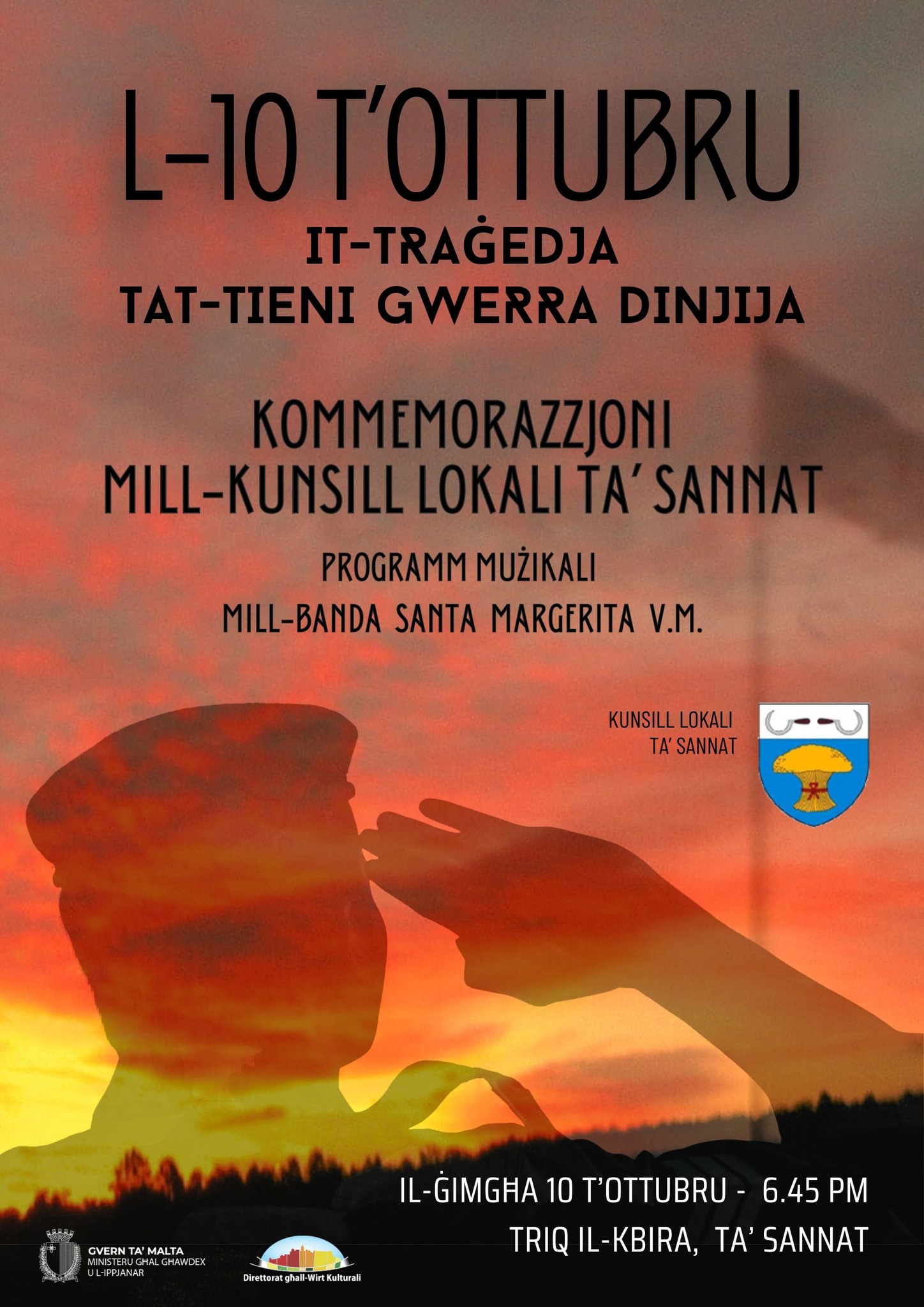 A commemorative event honouring the lives lost in the horrific incident on the 10th of October 1942, during the Second World War. Organized by the Ta' Sannat Local Council, the evening will feature a special musical program by the Santa Margerita V.M. Band and will help those attending gather in remembrance and respect for those who, not only endured the...