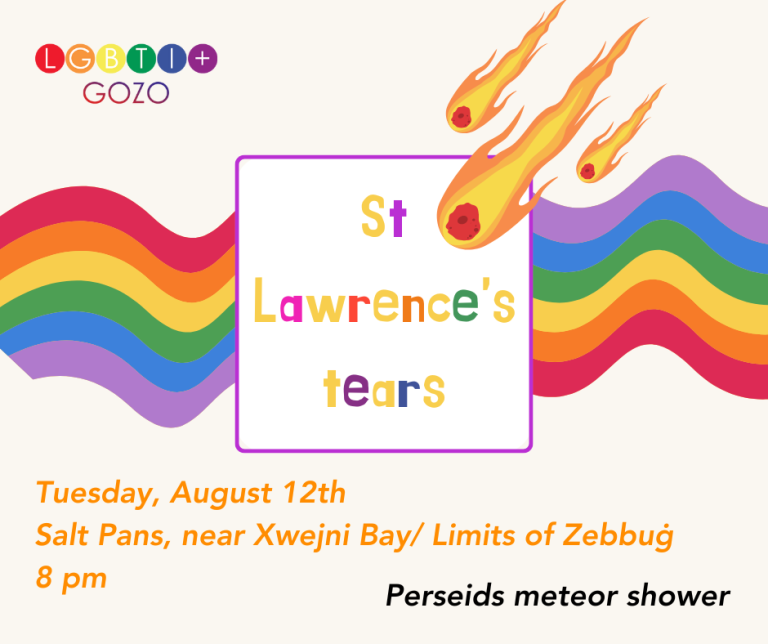 Let's star gaze together and watch the Perseids meteor shower. Make a wish on a shooting star as you lie down in the quiet of the salt pans, limits of Zebbug where there is no light pollution. Bring a blanket and a beverage/nibbles of your choice. This is a free event open to everyone, including LGBTI+ individuals and allies. It's...