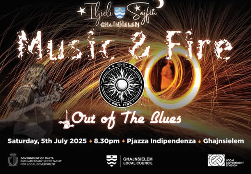 Join us this Saturday evening at the enchanting Independence Square for an electrifying Għajnsielem Summer Night! Expect a fiery, high-energy performance from Soul Fire, followed by Out of The Blues to carry the energy deep into the night.