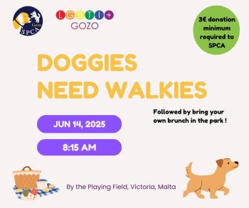 Doggies need walkies: Puppies and Brunch with LGBTI+ Gozo!Let’s give the carers a break! Join us for the morning dogs’ walk.Meet us to walk the dogs from the SPCA in Victoria and later play with the puppies and kittens at the SPCA premises. Then, bring something to eat so we can have brunch together in the park!We ask for a...