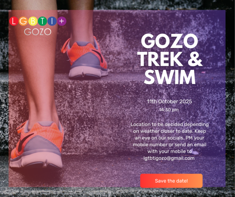 Join us for an unforgettable outdoor adventure with the LGBTI+ Gozo community, as we hit the trails and make a splash with our Gozo Trek & Swim event! Whether you’re looking to connect with others, get active, or just enjoy the beauty of Gozo, this is the perfect day out. The exact location will be confirmed closer to the date...