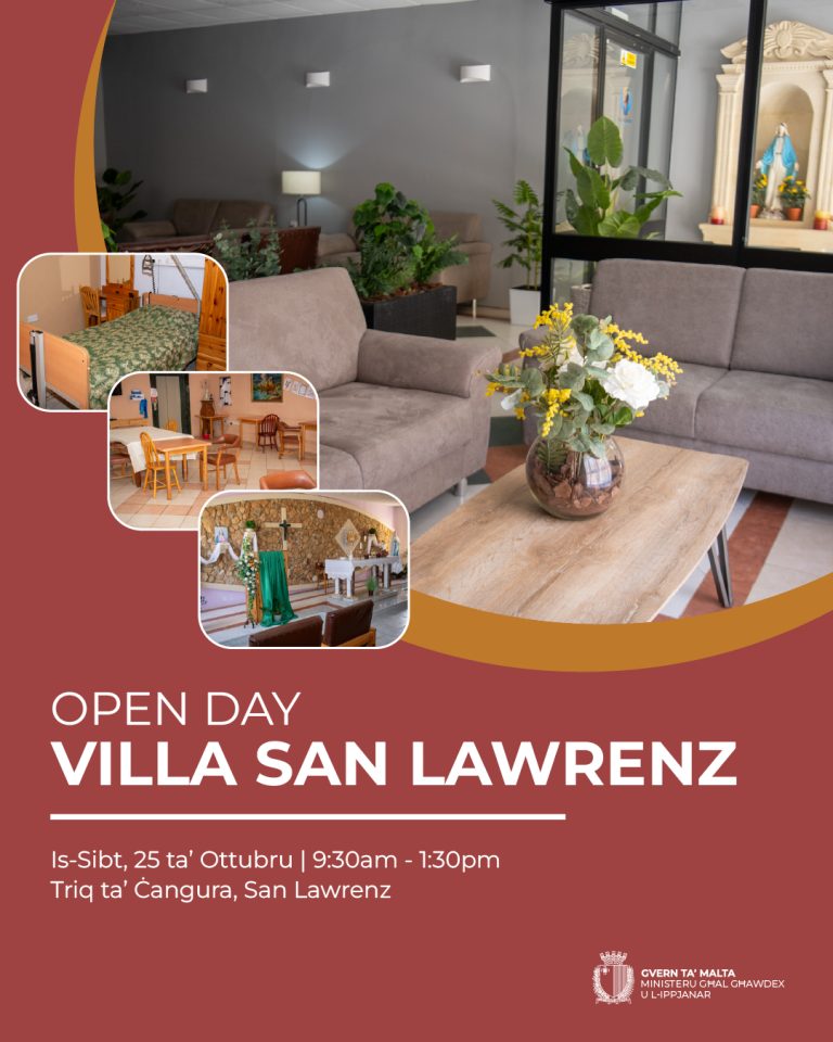 The team at Villa San Lawrenz is pleased to invite you to attend the Open Day, where you will have the opportunity to learn more about the care and support services they offer to their residents. For more information, please call 2156 4645.