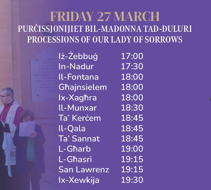 This Lent season, we warmly invite you to join us in the Solemn Procession of Our Lady of Sorrows through the picturesque villages of Gozo. Let us walk together in prayer and reflection, meditating on the profound sorrows of our Blessed Mother and drawing closer to her Son, our Lord Jesus Christ. Let us offer our hearts in faith, devotion,...