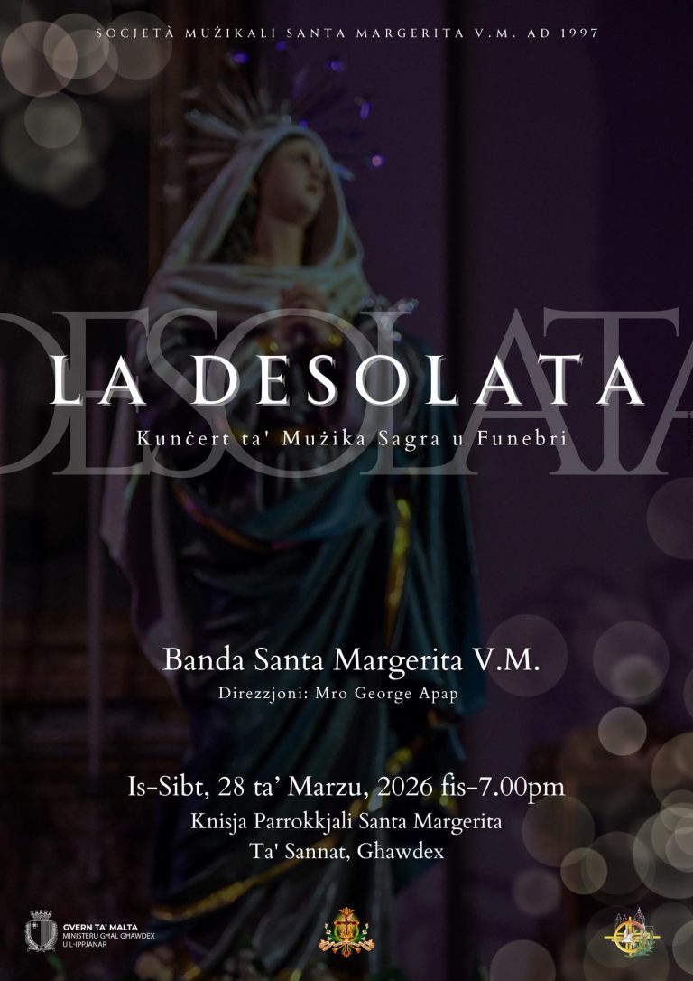 Join us during this Lenten season for a concert of sacred music and funeral marches, offering a moment of reflection, prayer, and spiritual depth. This moving musical experience will feature the participation of the St Margaret Band, under the direction of Mr George Apap, presenting a carefully selected repertoire that reflects the solemnity and devotion of Lent. All are invited...