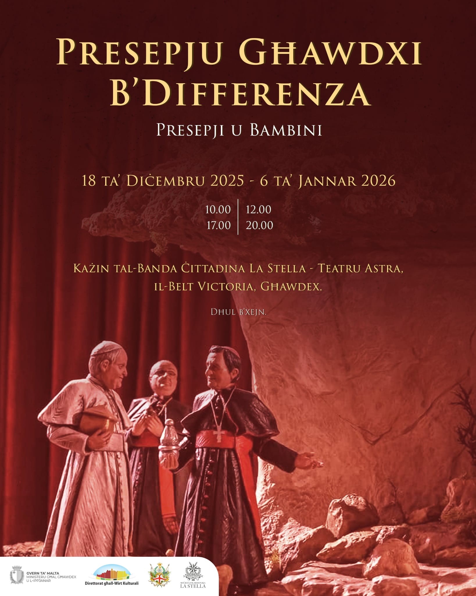 An exhibition showcasing an inspiring collection of Nativity cribs crafted by children from Gozo’s schools. The exhibition celebrates the creativity, imagination, and traditional craftsmanship of the island’s young artists, featuring cribs made from a variety of materials such as clay, wood, cardboard, papier-mâché, and recycled items. Each piece reflects the unique interpretation of the Nativity story, with cribs presented in different...