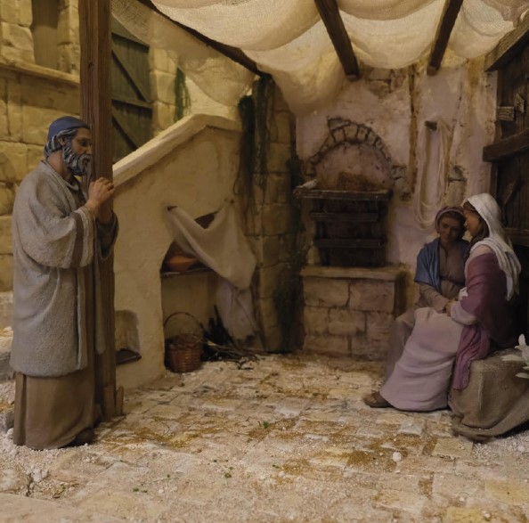 An artistic crib in a Biblical style crafted by Christopher Gatt and Paul Falzon, featuring finely detailed figures and a serene, reverent atmosphere that evokes the timeless story of the Nativity. Each element — from the humble manger to the expressive faces of Mary, Joseph, and the shepherds — reflects a deep respect for tradition and craftsmanship. The piece blends...