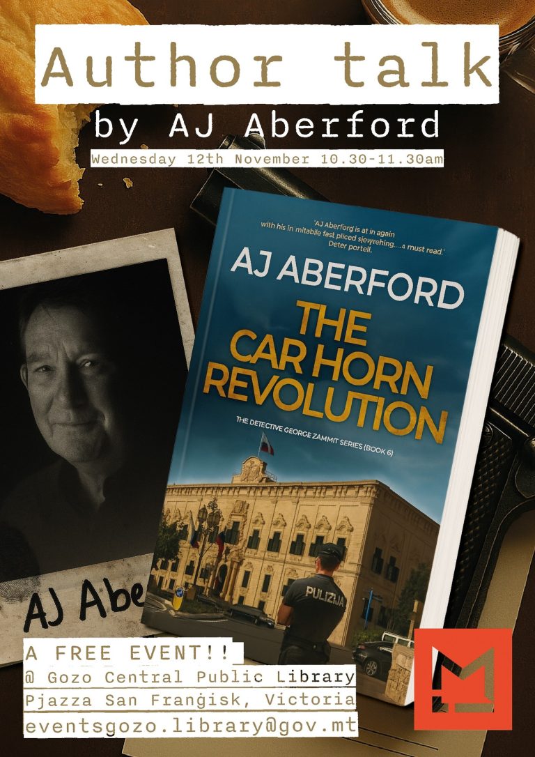 Join adventure and crime fiction author A. J. Aberford for an engaging talk and book-signing event featuring The Car Horn Revolution, the sixth instalment in the popular Inspector George Zammit series. Readers and fans are warmly invited to attend this special occasion and hear firsthand insights into the latest thrilling chapter of the series. Tony Gartland (writing as AJ Aberford)...