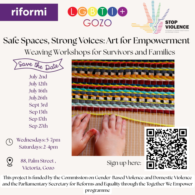Part of the ‘Together We Empower' programme, and funded by the  Commission on Gender-Based Violence and Domestic Violence and the Parliamentary Secretariat for Reforms and Equality this project supports survivors of gender-based and domestic violence, their families, and allies. We’re hosting a series of FREE, confidential, art-based workshops for survivors of gender-based and domestic violence, their families, and allies. Art is a powerful...
