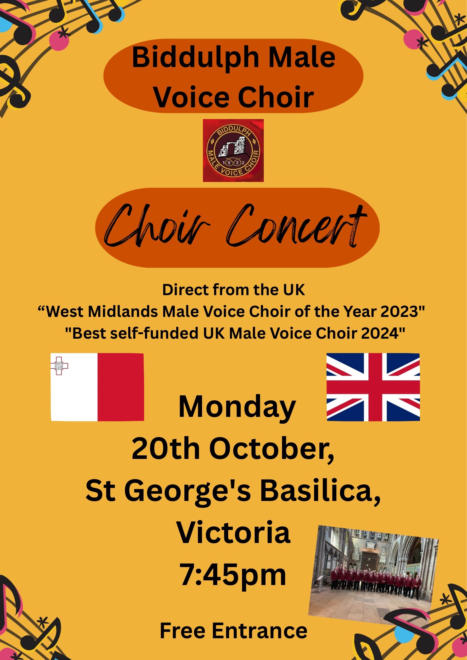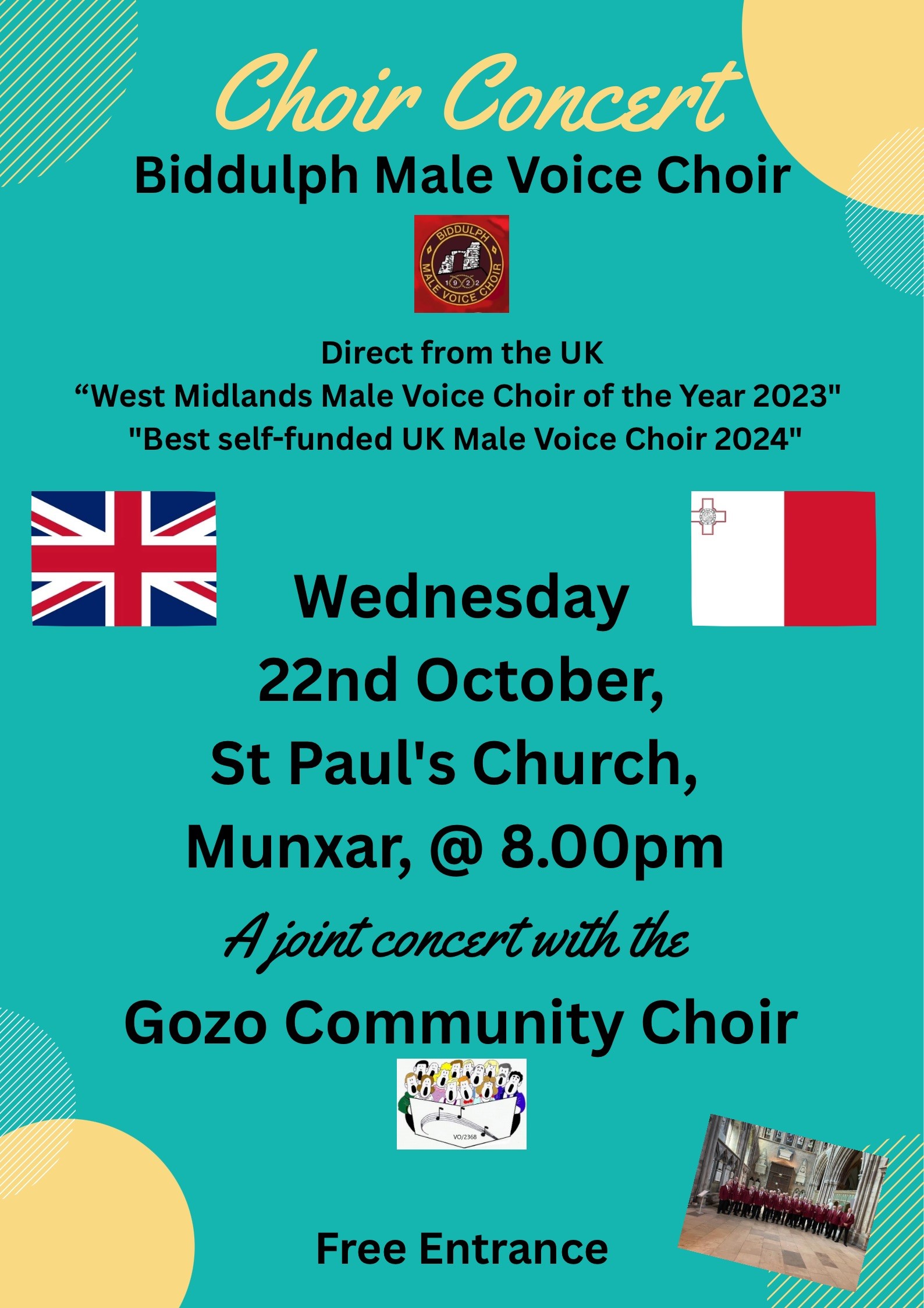 The Biddulph Male Voice Choir, hailed as the "West Midlands Male Voice Choir of the Year 2023" and "Best self-funded UK Male Voice Choir 2024," will be performing live in Gozo! Join them for an unforgettable Choir Concert on and experience the rich harmonies and powerful voices of this acclaimed UK choir in a stunning venue. Entrance is free, so…