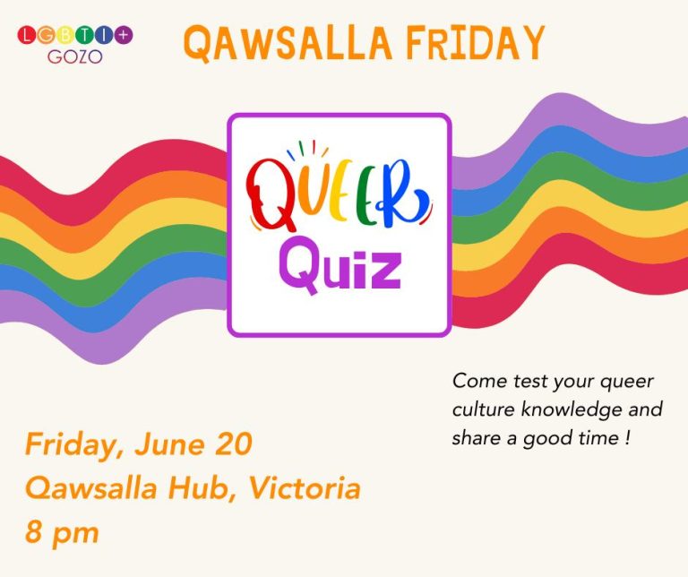 We’re launching Qawsalla Fridays — our hub will now open after hours once a month on Friday nights as Gozo’s only dedicated LGBTQIA+ space. A place to relax, connect, and just be you. This inter-generational event provides an opportunity to connect, talk and share your personal stories. We have some queer elders who will be recounting their coming out stories. This...