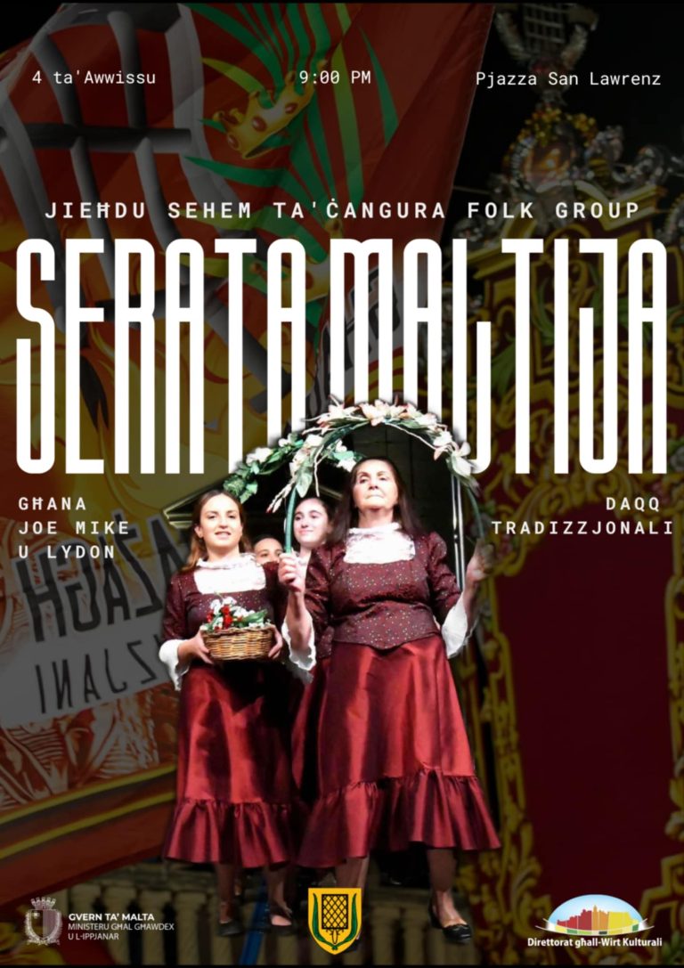 Join us for Lejlet il-Għana u Folk, a vibrant evening celebrating traditional Maltese music and culture! Enjoy live performances by talented artists including Anġlu l-Kina, JeanClaude tal-Fox, Raymond ir-Ruman, Etienne Pawney, Stefan tal-Minċoċ, and Tonil-Pikolin, with music animated by Ċangura Folk Group and guitarist Ryan tal-Pupa. The evening will also feature traditional dishes prepared by the Kumitat tal-Festa San Lawrenz.