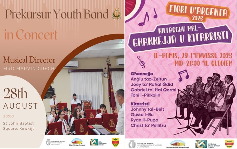 Fiori d'Argenta 2025 takes place over two evenings in Xewkija, celebrating music and tradition in honour of St John the Baptist. On Friday, 29 August, the Banda Prekursur will present a grand concert at 20:30 under the direction of Mro Marvin Grech. The evening concludes with a traditional bonfire and fig tart sharing. The event blends cultural heritage with community...